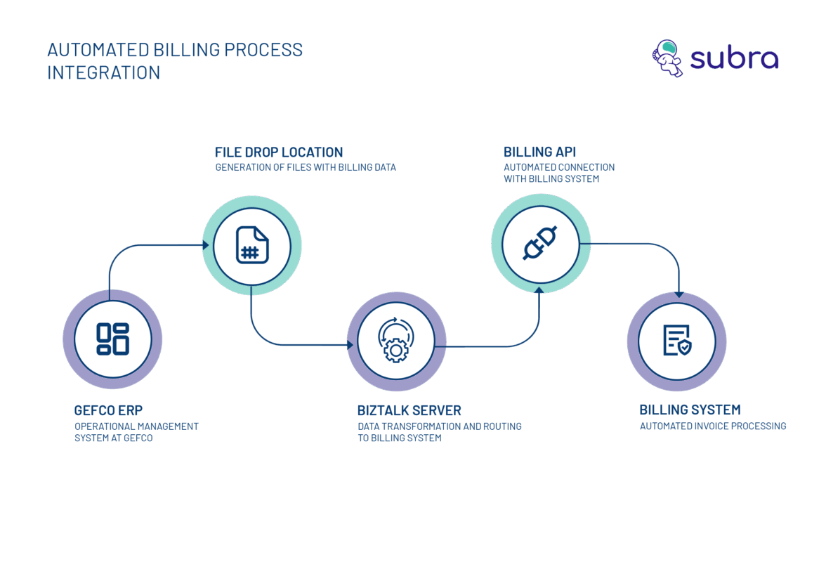 GEFCO faced challenges in its billing process due to the use of separate systems for operational management and invoice issuance. This separation required manual data transfer between the enterprise resource planning (ERP) system and the billing system, which increased the risk of errors, extended processing times, and affected operational efficiency. The company needed a solution to integrate both systems, automate data transfer, and streamline the billing process.
